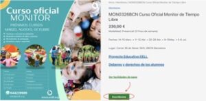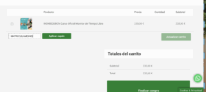 1. Añade a la cesta de compra el curso de monitores que quieres a través del botón «INSCRIBIRME»